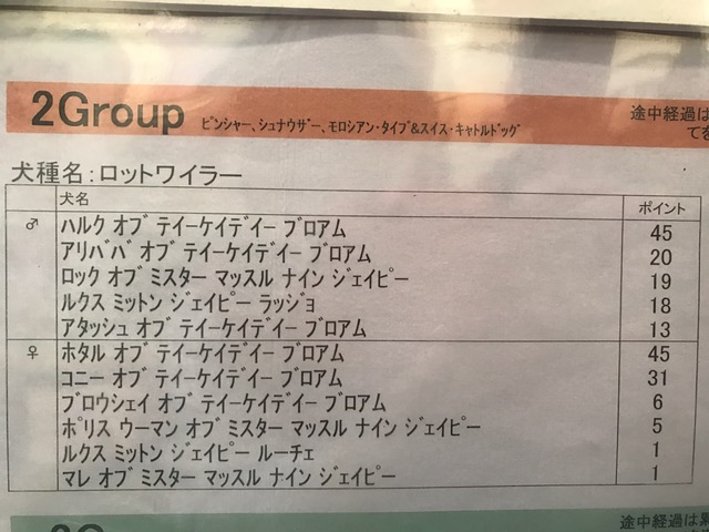 パピークラスに入ったばかり、6ヶ月と5日という月齢にもかかわらず、見事!グループ1席を獲得しました(゚д゚)! 私は大興奮!!(笑) ハルクもピックアップはされたんですが、あと一歩届かず…(T_T) でも課題が見つかったので次回に期待です♪