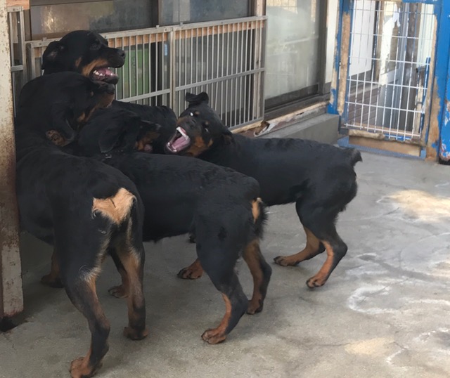 そしてロットパピー軍団!生後6ヶ月になりました! 寒くても本当に元気いっぱいで運動場で遊んでいます! 追いかけっこしたり、レスリングしたり...(笑) 見てる私が疲れます(*_*; この子達の子守役は、コニーちゃん!! 毎日、この子達の面倒を見てくれています(*^-^*)