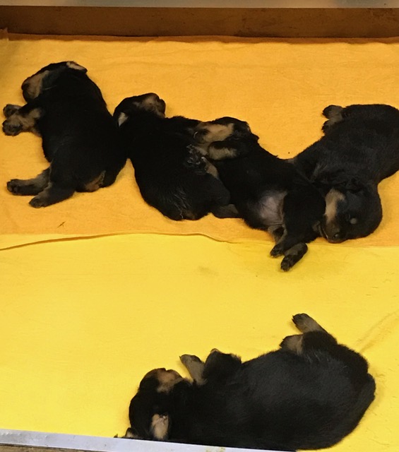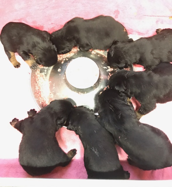 ロットワイラーの赤ちゃん達の食事風景! 随分、食べるようになってはきたけど、まだまだママのお乳のが好きみたい(;^ω^)