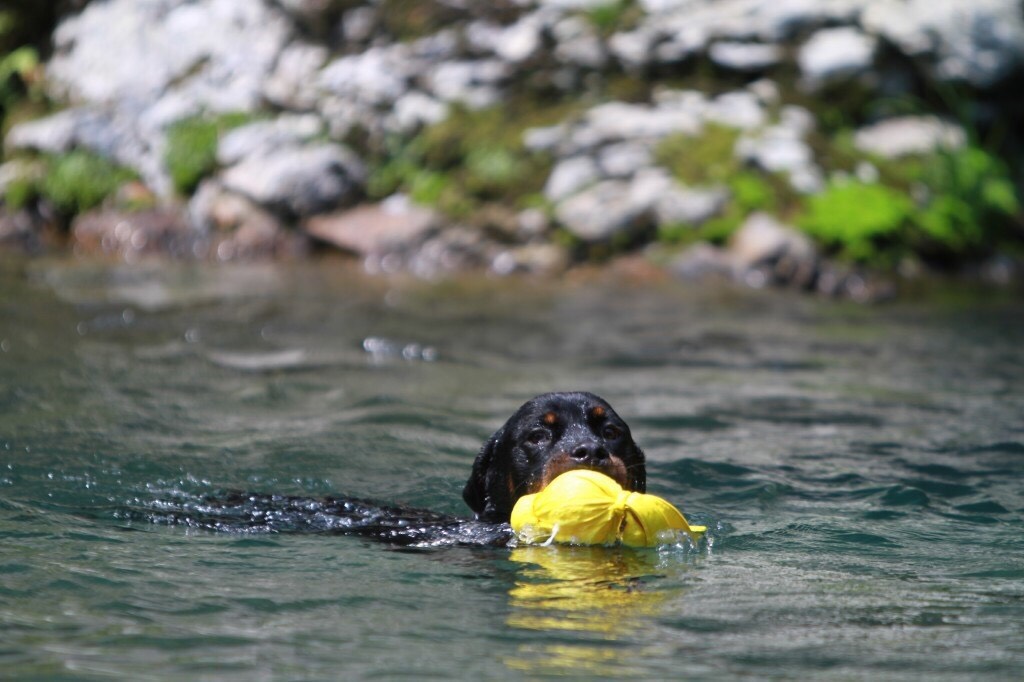 九州に住んでいるTさんの愛犬、アルゴくん! 生後7ヶ月です。気持ちよさそうに泳いでる~ とても綺麗な川で羨ましい! 私も一緒に泳ぎたい!!