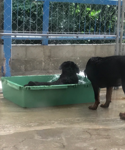 暑すぎて、タライに入る蘭ちゃん!(笑)