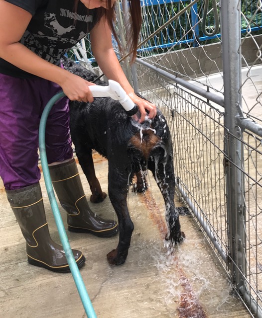 シャンプーしてもらったり、色々な事を教えました。2週間では犬の知識は学べません...