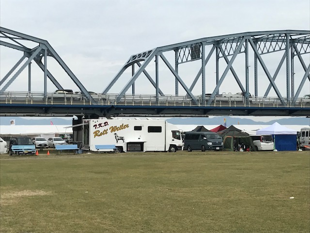 橋の下!!(笑) この場所に来たのは6年ぶり! その時はシーズーをドッグショーに出して二日連続でオーバースペシャルしたなぁ~~。って昔の思い出がこの場所にきてよみがえりました(^-^) また今回も良いことが起きるといいなぁ...なんてウキウキ気分でしたが、風が半端じゃないくらい吹いていて寒~~~い((+_+))