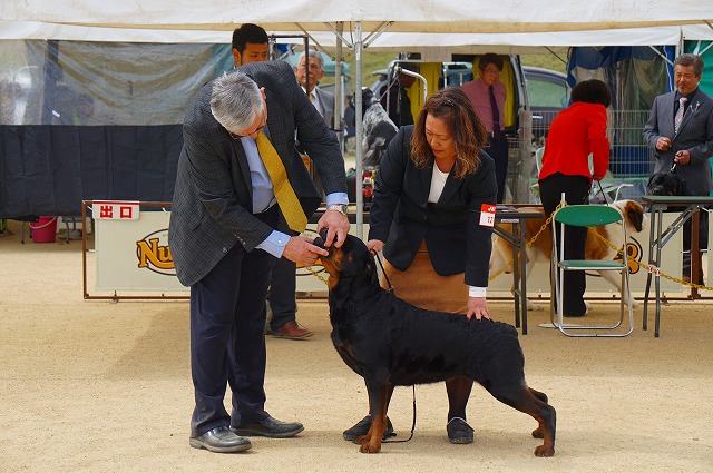 14日 愛媛県クラブ連合会展 土日とも天気予報では雨だったけど、この日は天気も良く暑くもなく寒くもなく暑がりなロットワイラーたちには良い気候。 チャンピオンクラスのハルク(オーナーMさん)綺麗な歩様で惚れ惚れします(#^^#)