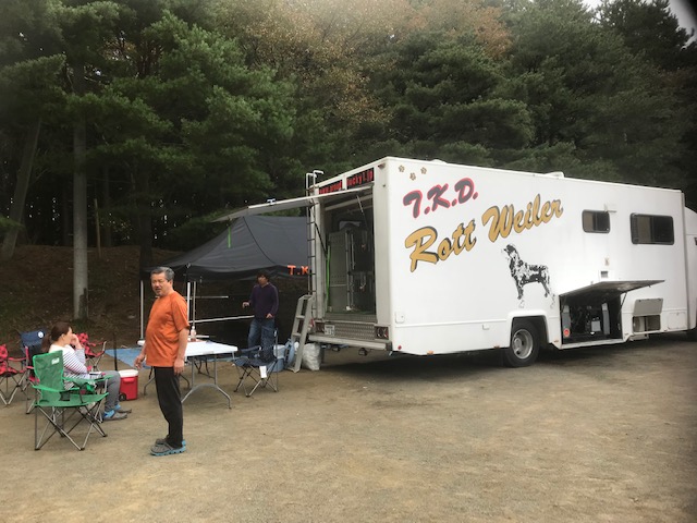 この日は8時から審査開始。 ロットワイラーの審査時刻は9時。 いつもより時間が早いので朝からバタバタと準備。